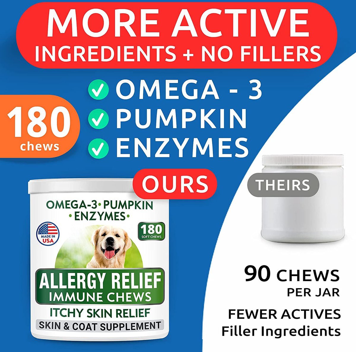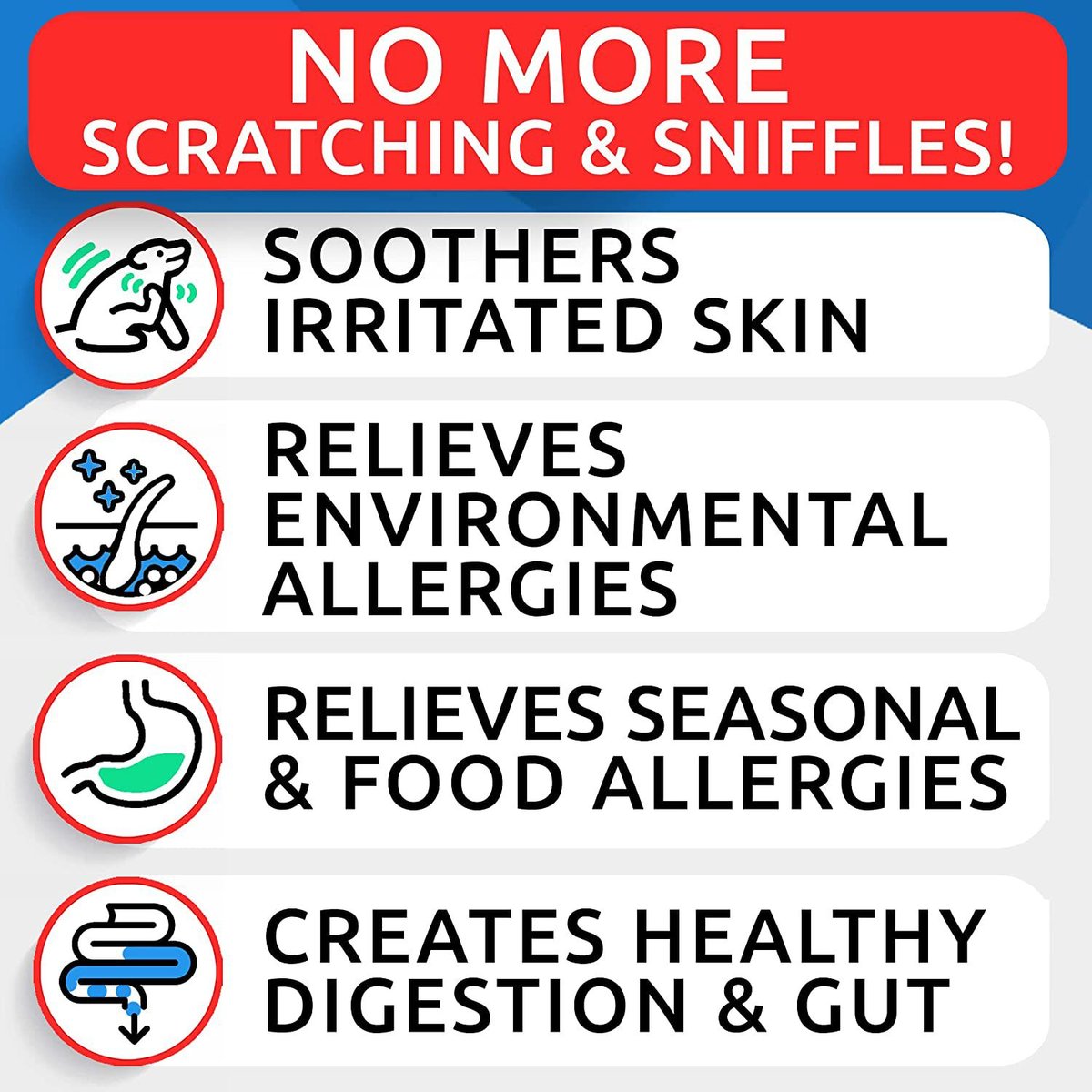 Bark&Spark Allergy Relief & Anti Itch Relief with Omega 3 Skin & Coat Fish Oil Chew Supplement for Dogs, 180 count