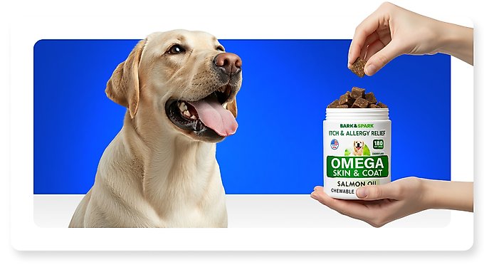 - DealBark&Spark Allergy Relief & Itch Relief with Omega 3 Skin & Coat with Salmon Oil Chew Supplement for Dogs & Cats, 180 count$24.99 Chewy Price$34.95 List Price$23.74 Autoship PricePromo, New Customers Only: Spend $49+, Get $20 eGift Card +2 deals