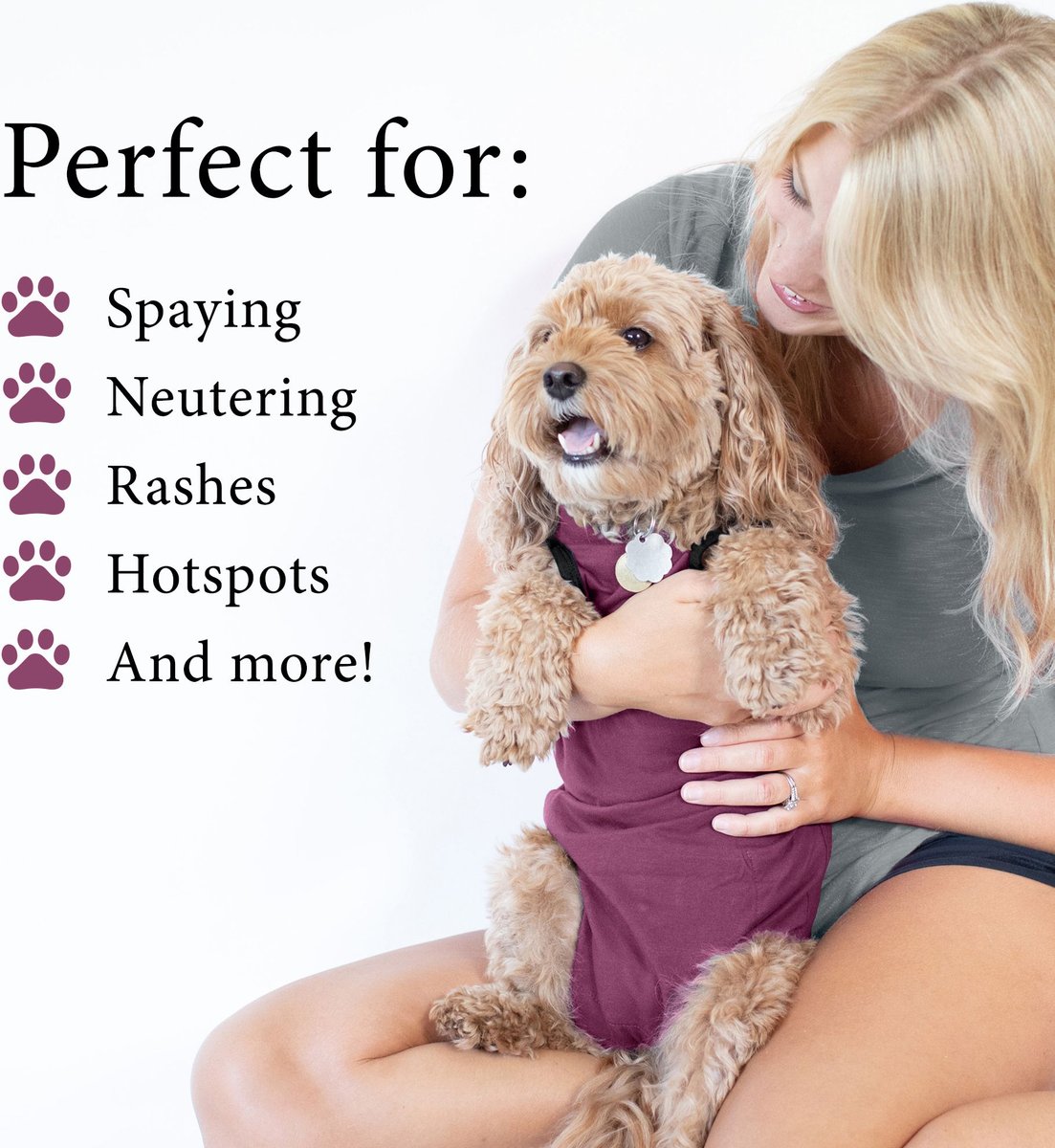 Comfortable Recovery Soft, breathable fabric keeps your dog cool and comfy during recovery.