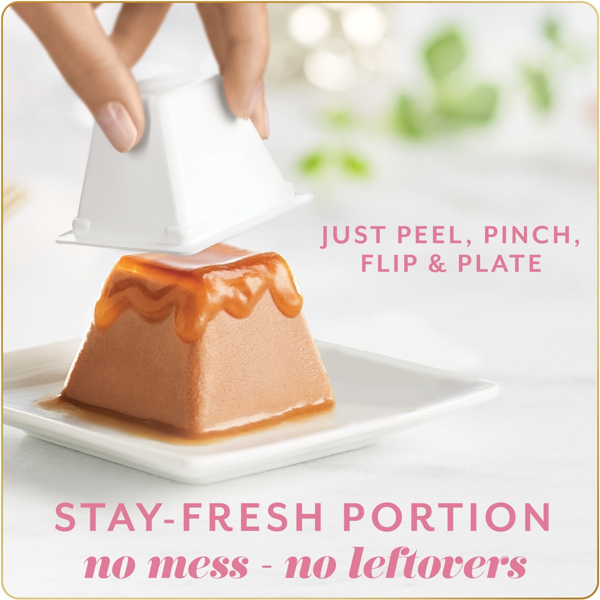 Cuisine Like You’ve Never Seen Let your cat revel in the reveal of this spectacularly layered creation. Simply peel, reveal, and pamper your cat with a mouthwatering mousse paté crowned with savory gravy.
