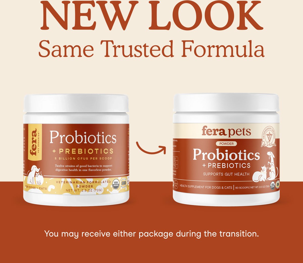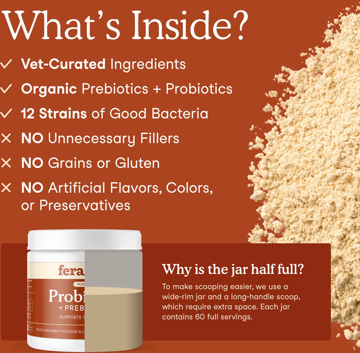 Fera Pets Probiotics with Organic Prebiotics Powder Supplement for Dogs & Cats, 2.56-oz jar