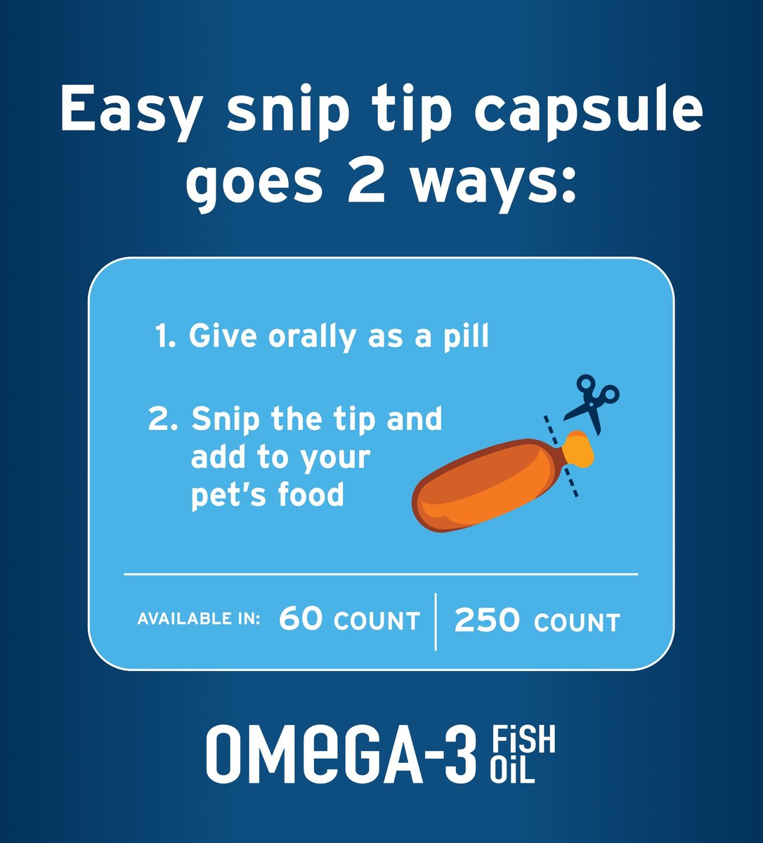 - Pet Protect Free Form Omega-3 Fish Oil Snip Tip Capsule Supplements for Small Dogs & Cats, 60 count$24.99 Chewy Price$23.74 Autoship PricePromo, New Customers Only: Spend $49+, Get $20 eGift Card +2 deals