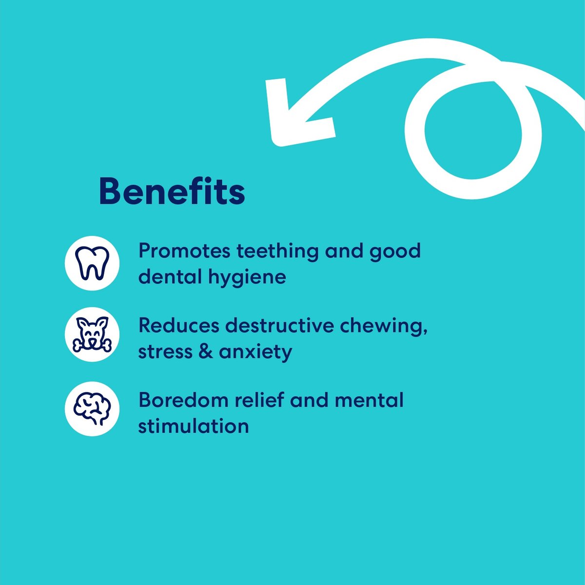 Our expertly designed chew toys redirect your dog’s instinctive desire with a positive outlet to satisfy the urge that’s mentally stimulating, prevents boredom and offers an alternative to chewing on household furniture.