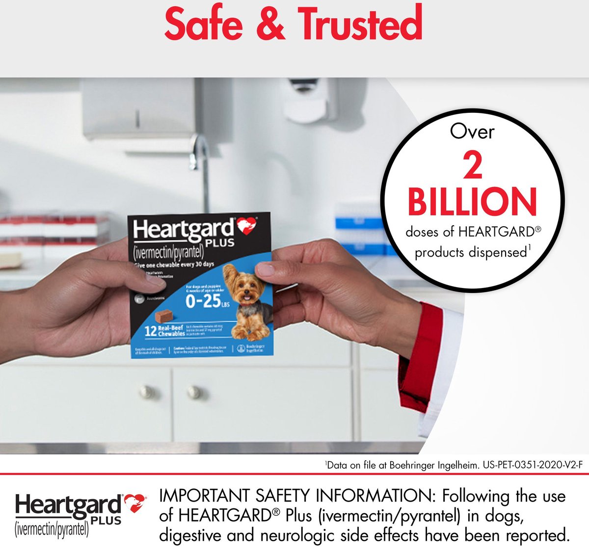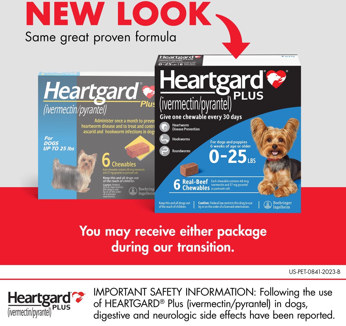Heartgard Plus Chew for Dogs, up to 25 lbs, (Blue Box), 6 Chews (6-mos. supply)