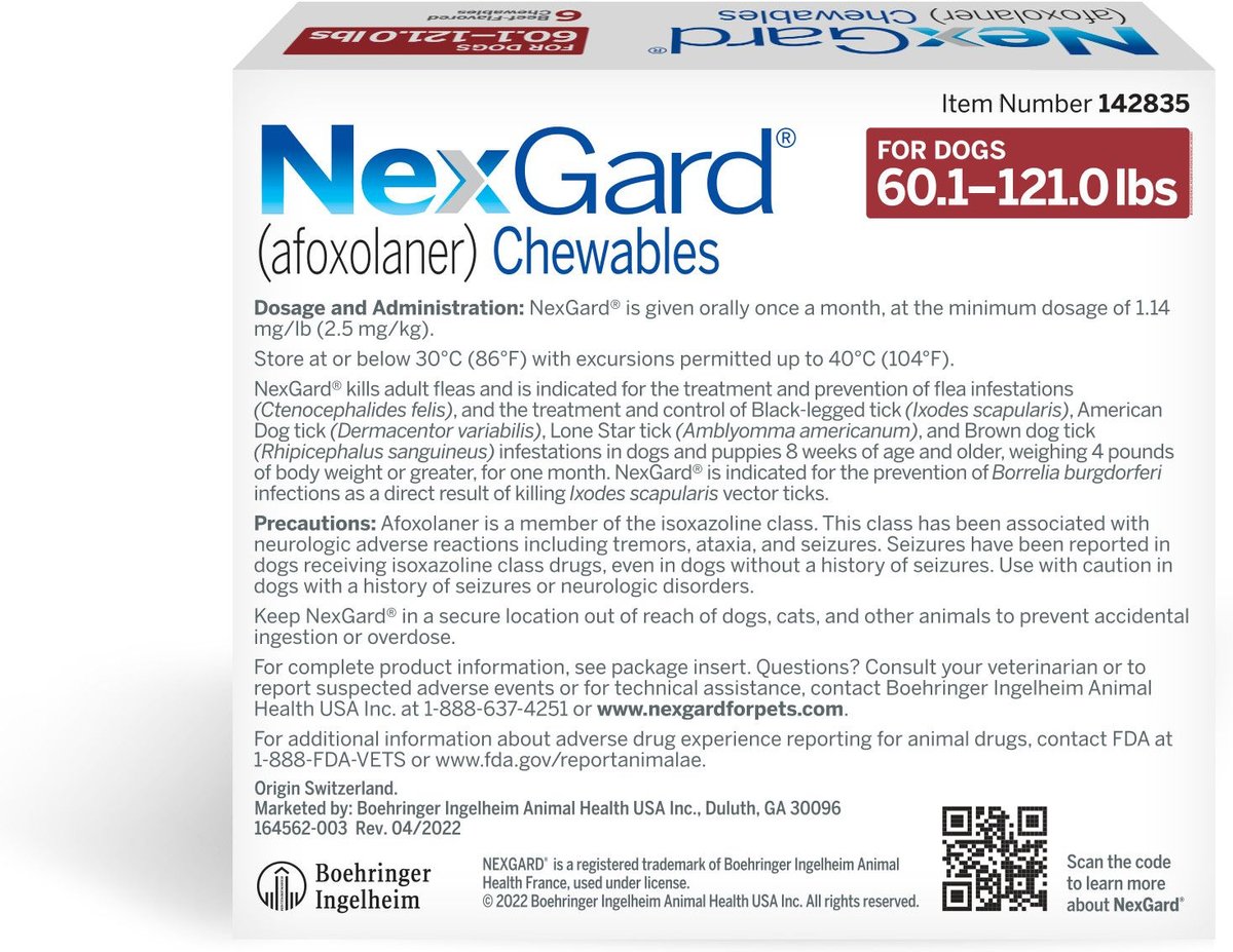 NexGard Chewables for Dogs, 60.1-121 lbs, (Red Box), 6 Chewable Tablets (6-mos. supply)