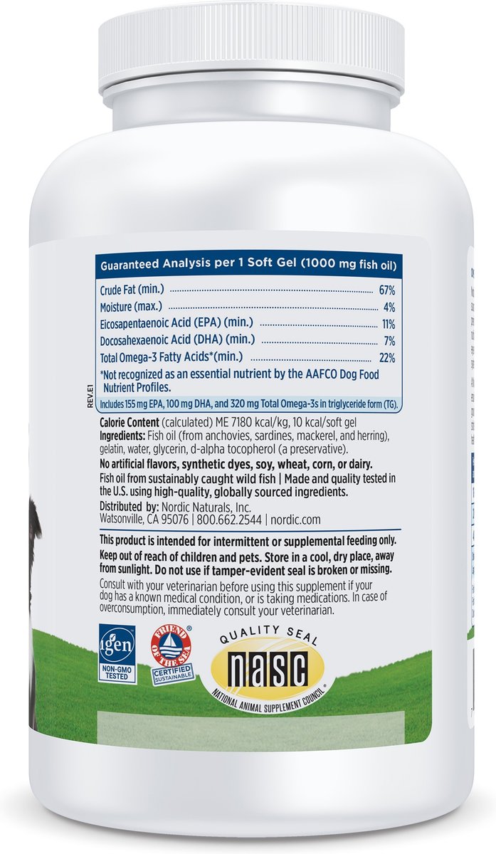 Nordic Naturals Omega-3 Pet Softgels Supplement for Dogs, 180 count