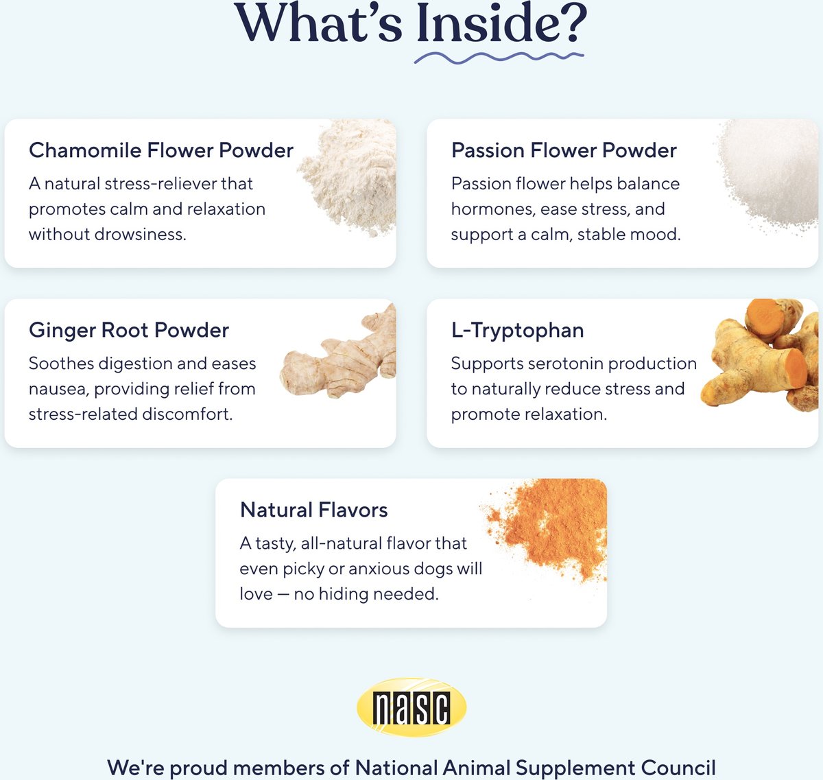 The calming effects of this supplement can last up to 8-10 hours. Results may vary from pet to pet.