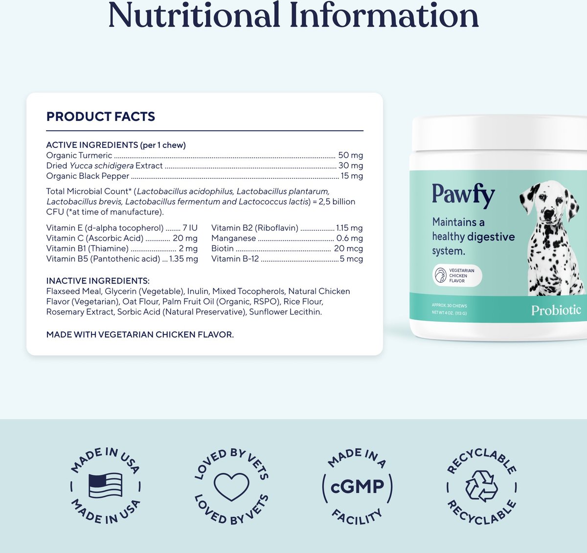 Pawfy Probiotic Chicken Flavor Chews Dog Supplement, 30 count