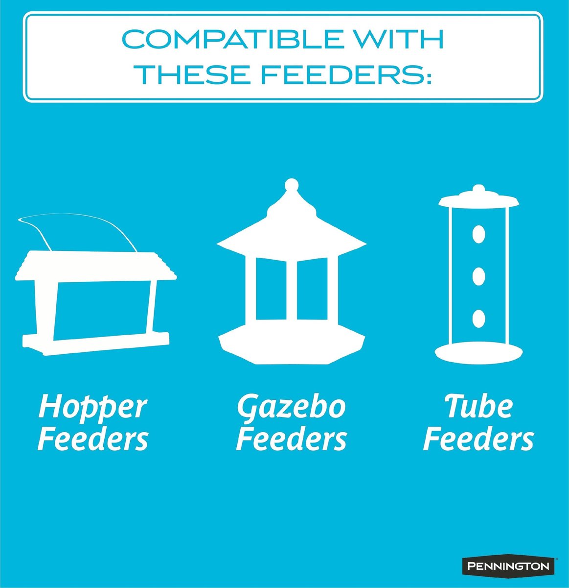 • This feed is compatible with a variety of feeders including gazebo, hopper, platform, and tube bird feeders (sold separately).