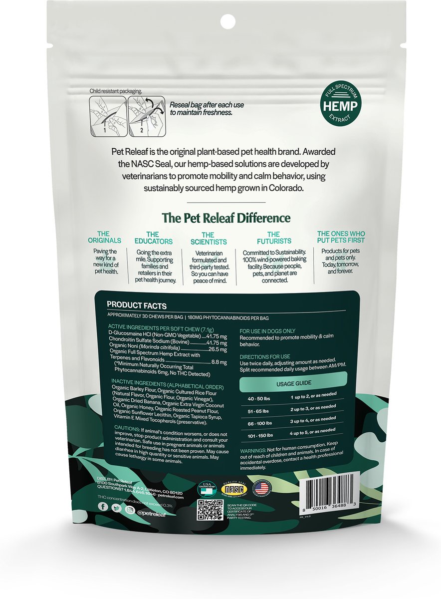 Pet Releaf Edibites Hip & Joint Releaf Organic Peanut Butter & Banana Flavored Chew Full Spectrum Hemp Extract Hip & Joint Health Supplement for Medium & Large Dogs, 30 count