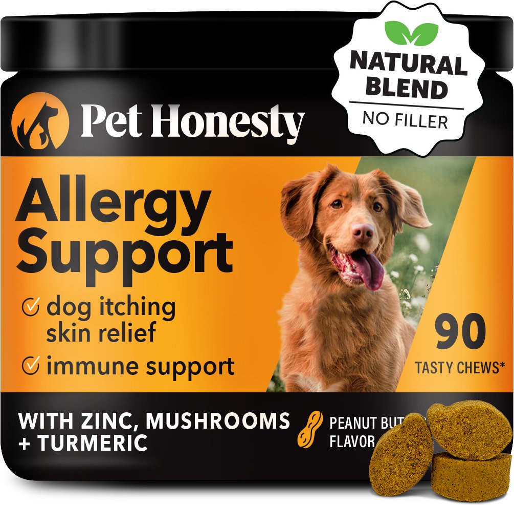 Pet Honesty Allergy Support Peanut Butter Flavored Colostrum & Turmeric Chews, Itchy Skin, Immune & Allergy Relief Supplement for Dogs, 90 count