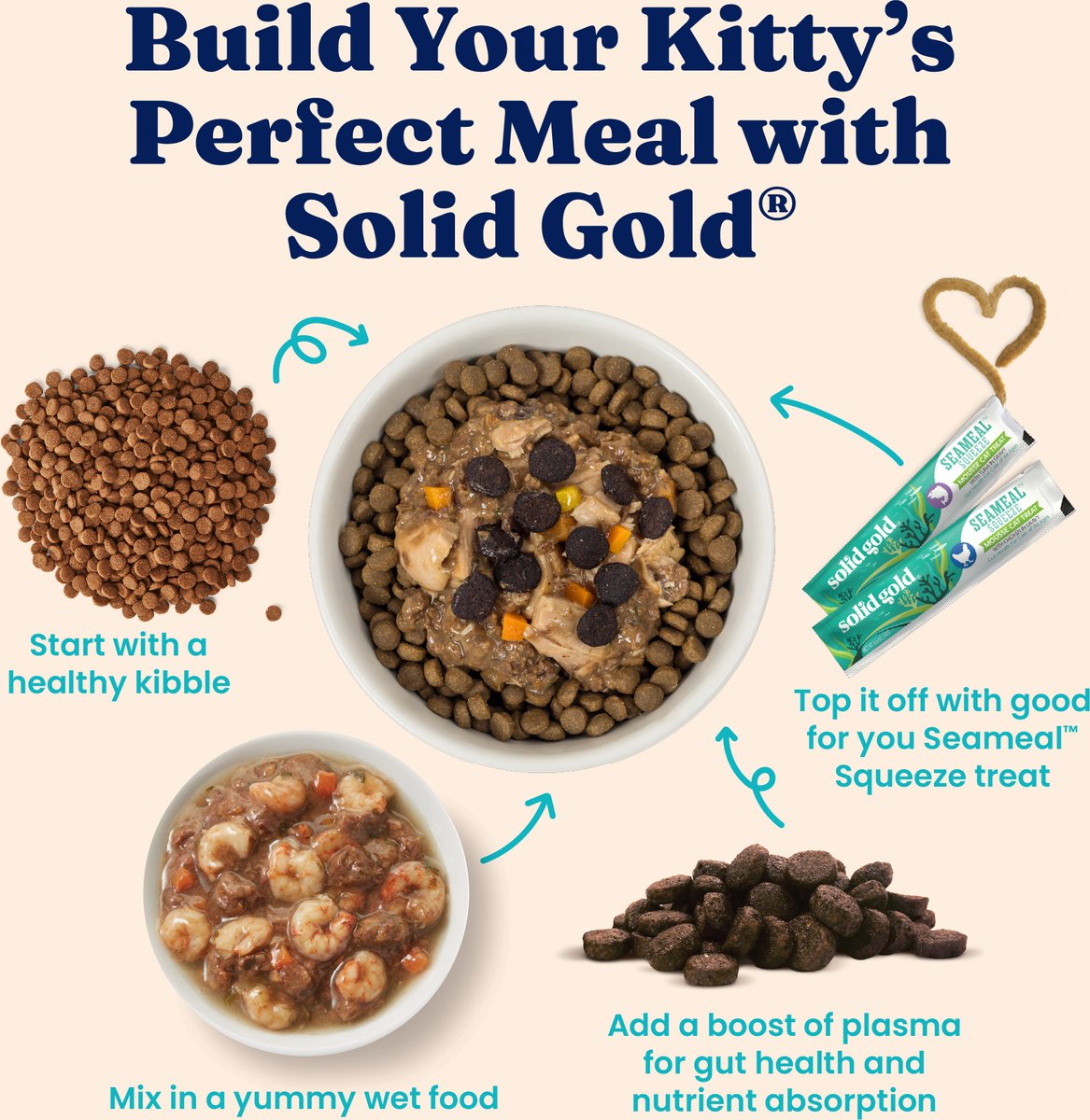 - Solid Gold Gut Health Grain-Free Nutrient Absorption & Digestion Cat Food Topper, 16-oz bag$9.99 Chewy Price$9.49 Autoship PricePromo, New Customers Only: Spend $49+, Get $20 eGift Card