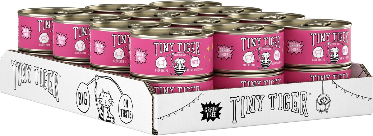 - Tiny Tiger Grain-Free Pate Beef & Poultry Recipes Variety Pack Canned Cat Food, 3-oz can, case of 24By$17.99 Chewy Price$17.09 Autoship PricePromo, New Customers Only: Spend $49+, Get $20 eGift Card