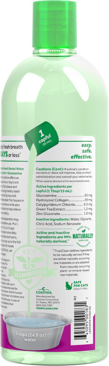 TropiClean Fresh Breath Dental Water Additive for Dogs Plus Hip & Joint, 33.8-fl oz bottle