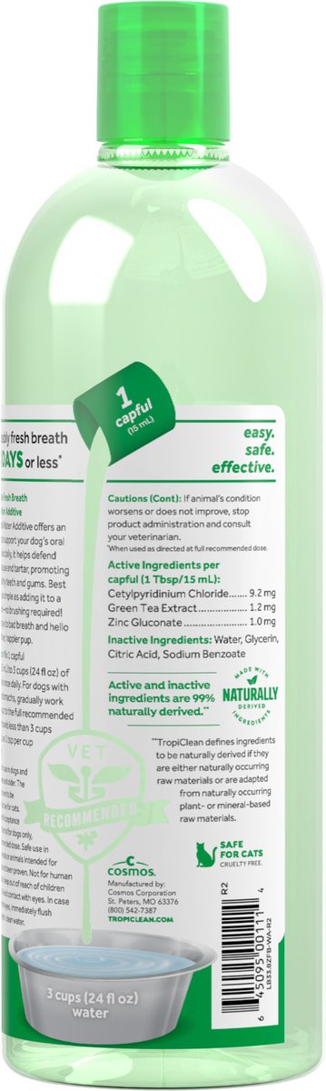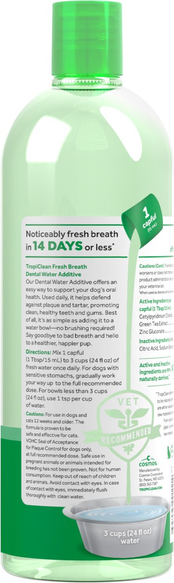TropiClean Fresh Breath Dental Water Additive for Dogs, 33.8-fl oz bottle