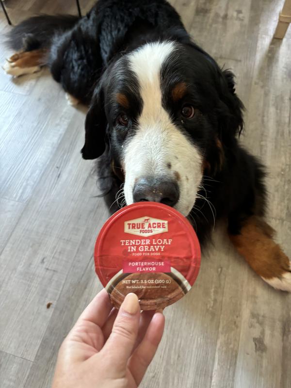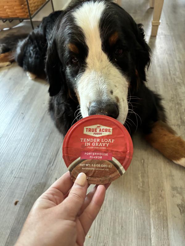 - True Acre Foods Beef Recipe Tender Loaf in Gravy, Wet Dog Food, 3.5-oz cup, case of 12By$13.99 Chewy Price$13.29 Autoship PricePromo, Save 50% on your first Autoship +1 deal