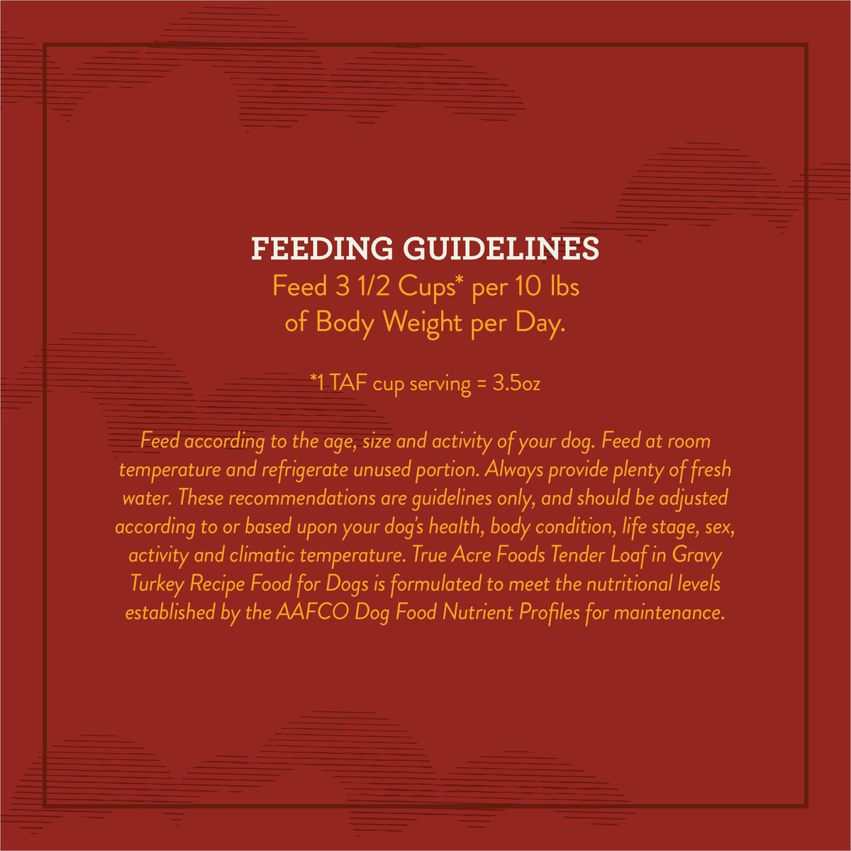 True Acre Foods Turkey Recipe Tender Loaf in Gravy, Wet Dog Food, 3.5-oz cup, case of 12