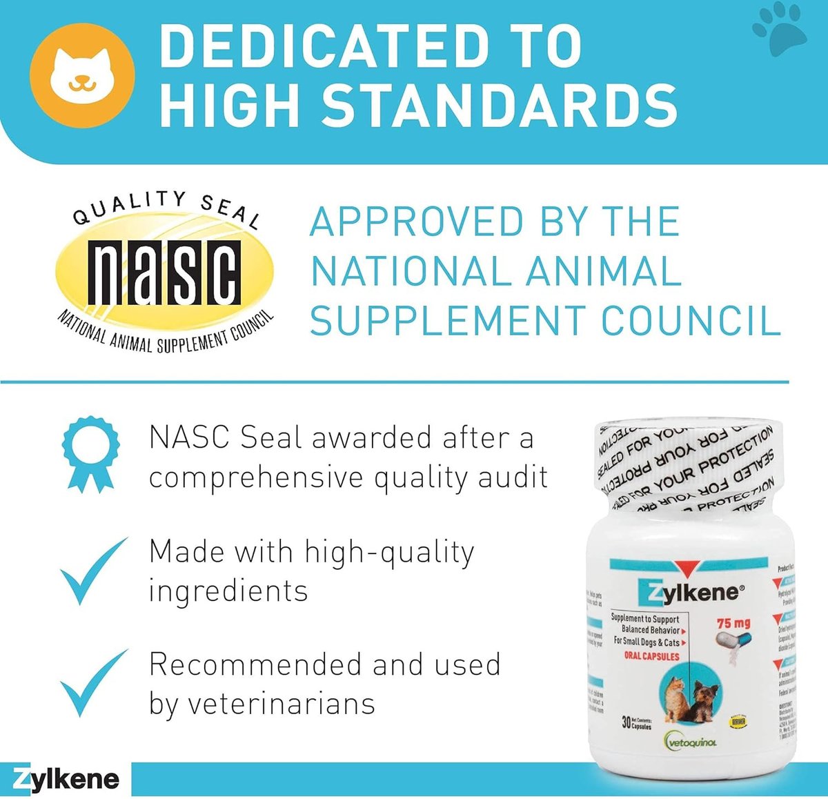 Vetoquinol Zylkene 75-mg Capsules Calming Supplement for Small Dogs & Cats, 30 count