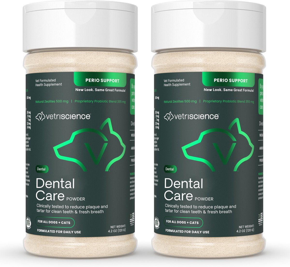 VetriScience Perio Dental Care Powder Clinically Tested Breath & Plaque Control Supplement for Dogs & Cats, 4.2-oz, bundle of 2