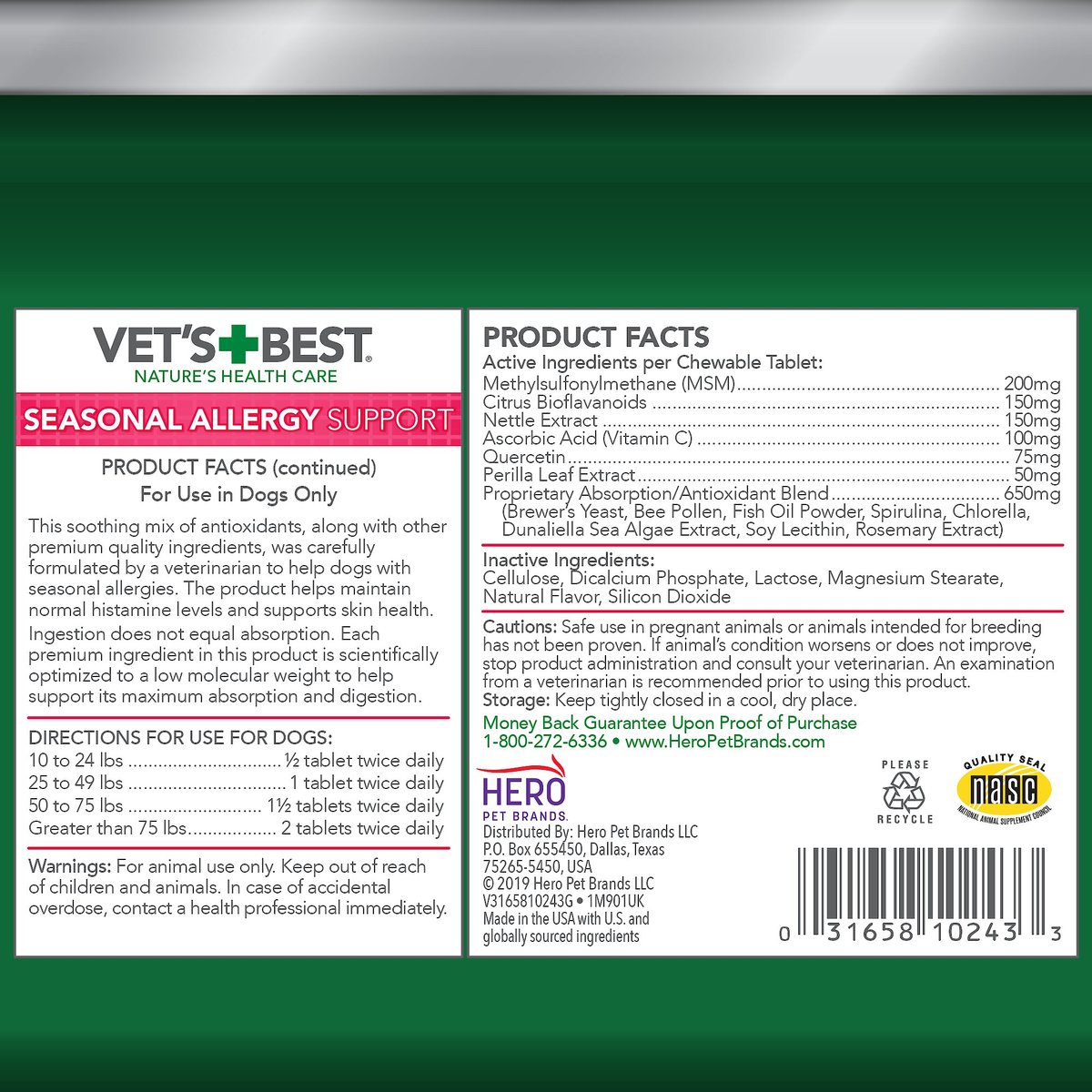 Vet's Best Chewable Tablets Allergy Supplement for Dogs, 60 count