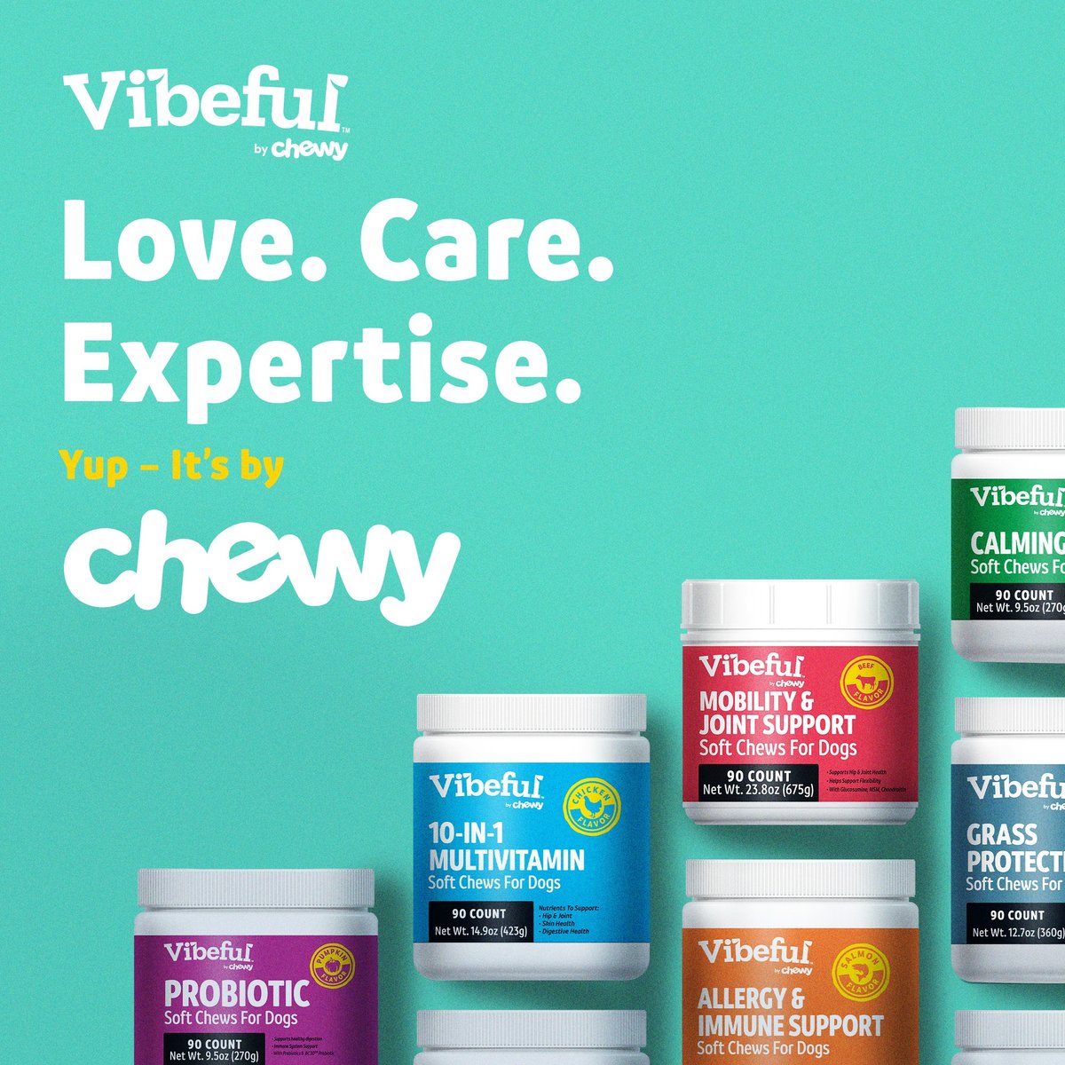 Vibeful brings daily supplements designed to help your pet achieve the vibe they're going for, from multivitamins for all-day swagger to hip & joint support for all the smooth moves. By the pet pros at Chewy, meet your pet's new wellness ritual.