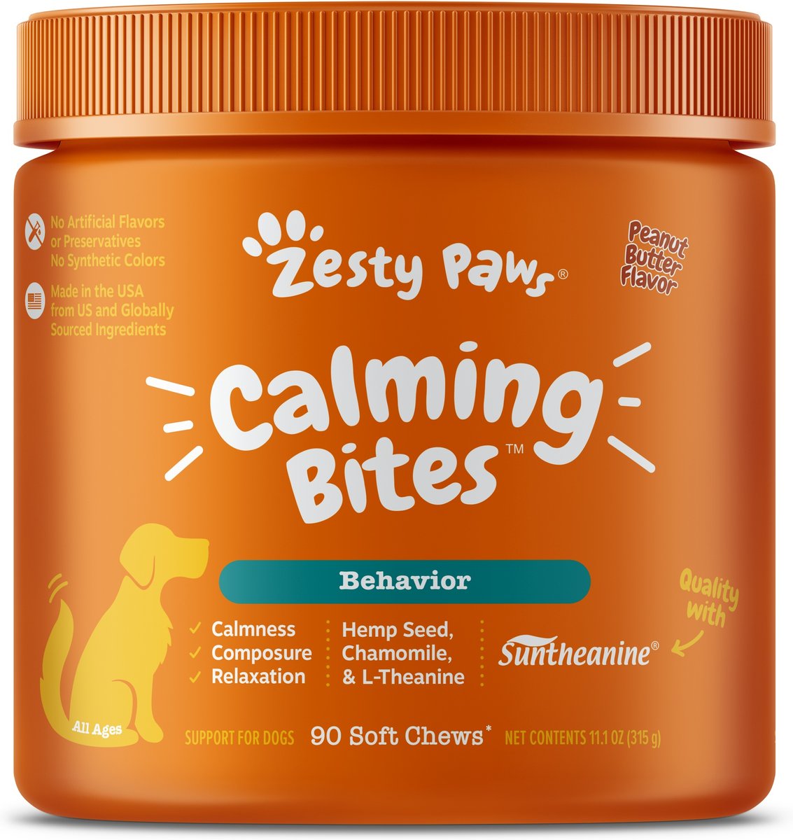 Zesty Paws Hemp Calming Bites Peanut Butter Flavored Soft Chews Composure & Relaxation Supplement for Dogs, 90 count
