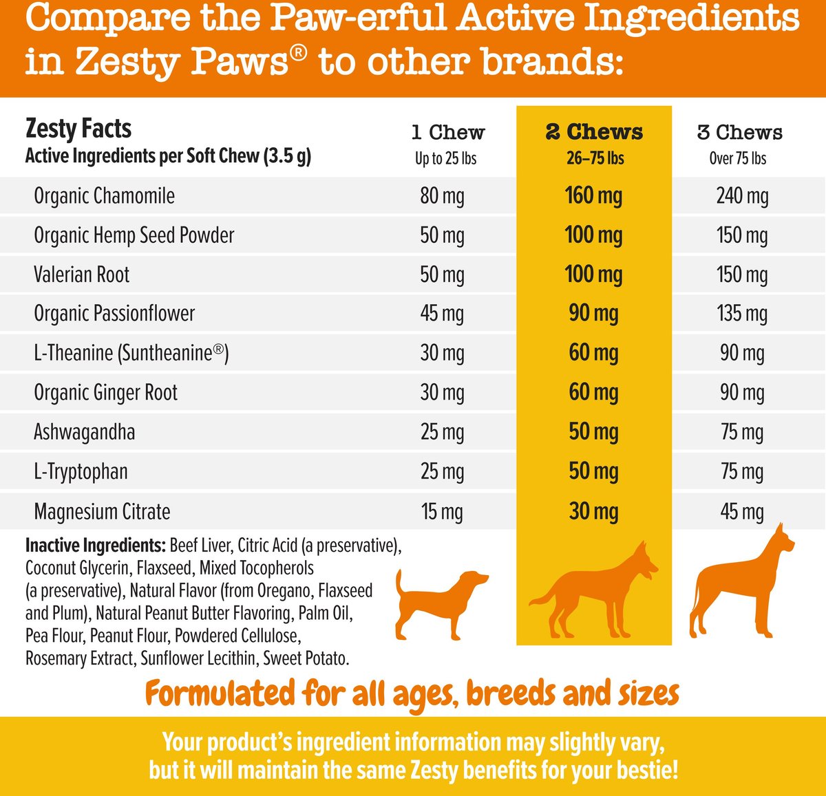 - Zesty Paws Hemp Elements Calming Hemp OraStix Peppermint Flavored Dental Chews Melatonin Supplement for Dogs, 12-oz bag$14.99 Chewy Price$14.24 Autoship PricePromo, Save 50% on your first Autoship +1 deal