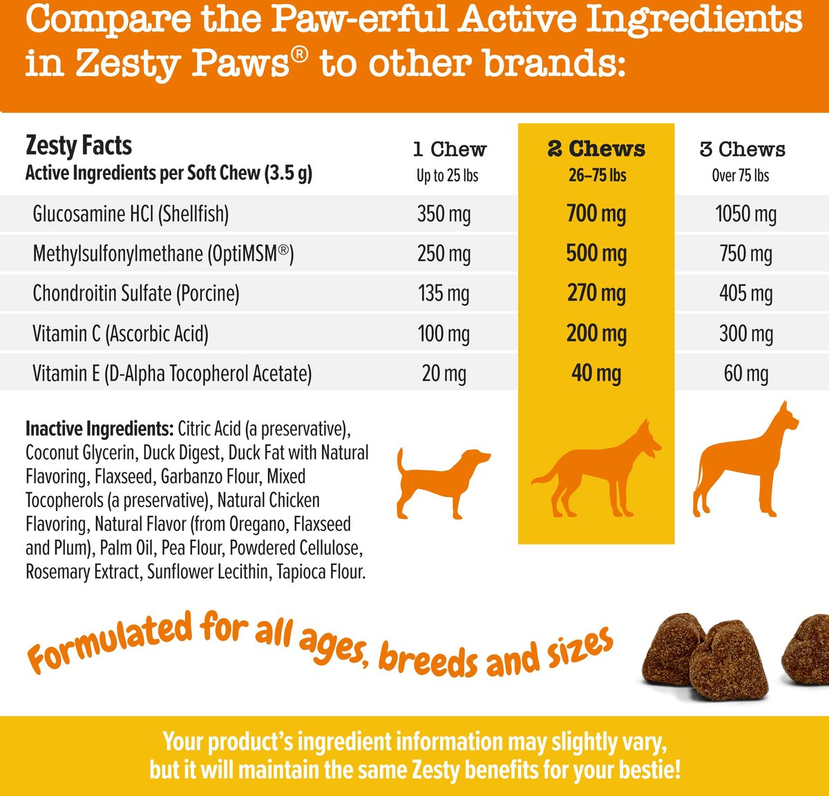 - Zesty Paws 8-in-1 Bites Chicken Flavored Soft Chews Multivitamin for Dogs, 10 count$4.97 Chewy PricePromo, Save 50% on your first Autoship +1 deal